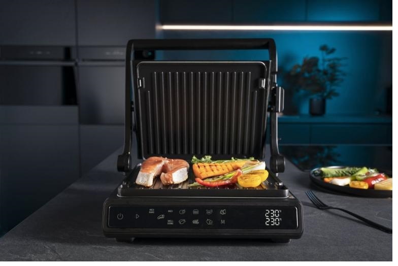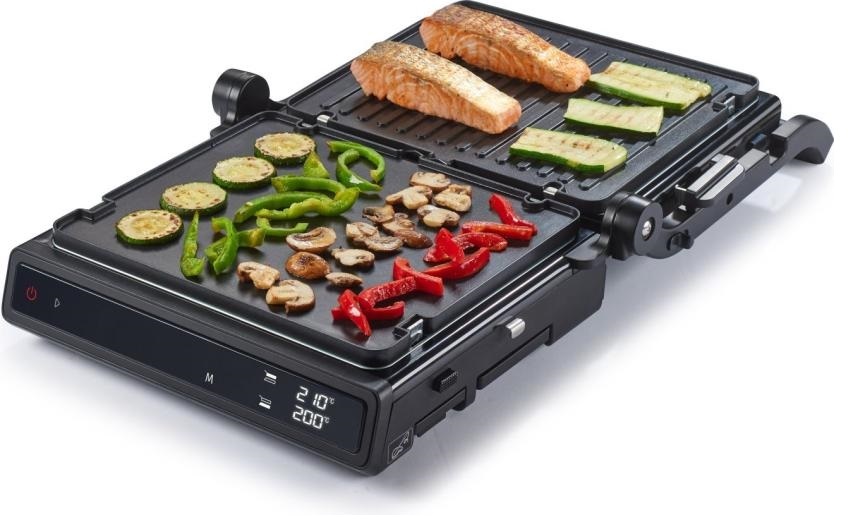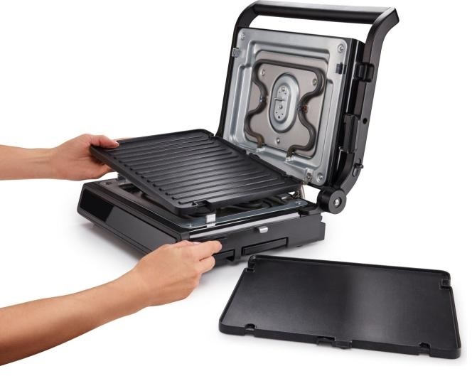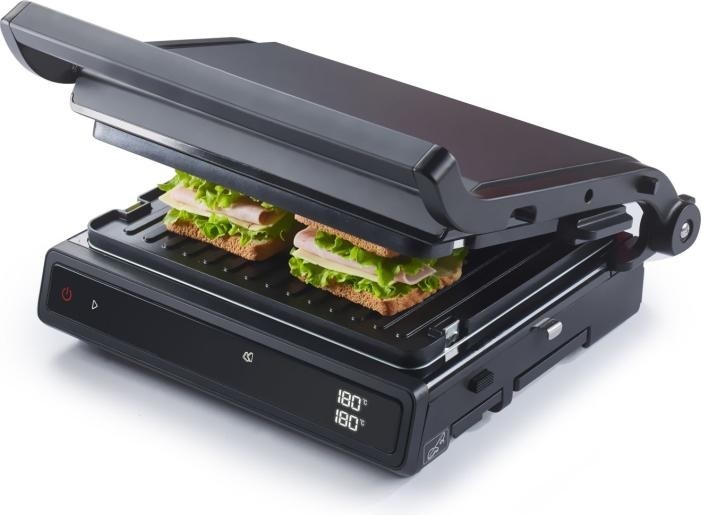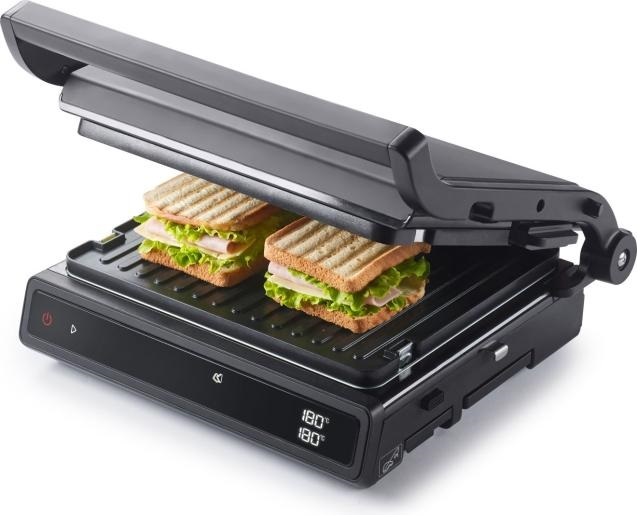 Незалежне керування пластинами приготування дозволяє встановлювати окрему температуру на кожній знімній та реверсивній панелі — від 80 °C до 230 °C — завдяки чому можна одночасно готувати основну страву та гарнір. А завдяки функції відкритого гриля з обертанням на 180° пристрій легко трансформується із сендвіч-преса в відкритий гриль, подвоюючи площу для приготування та дозволяючи готувати великі порції або паніні.
