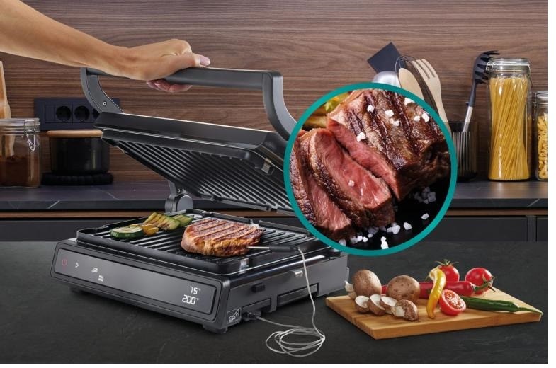 Гриль Hisense HCG1600DBT робить процес приготування страв простим, зручним та професійним завдяки сучасним технологіям і багатофункціональному дизайну. Однією з ключових особливостей є датчик готовності м’яса, який дозволяє точно виміряти температуру продукту та обрати бажаний рівень просмаження — від майже сирого стейка до добре просмаженого. Завдяки цьому ви завжди отримуєте ідеальний результат без здогадок.