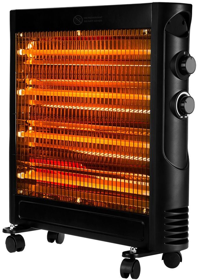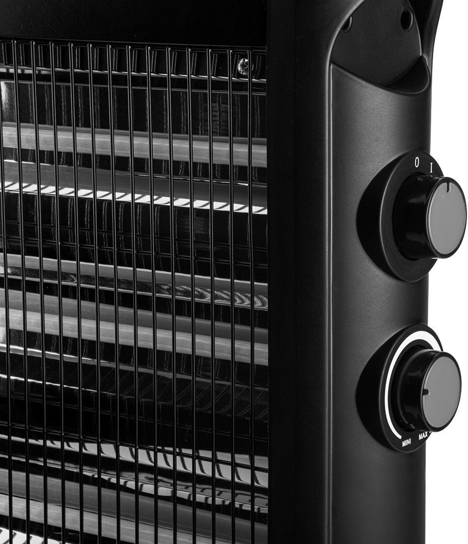 Кварцовий інфрачервоний обігрівач 600/1200 Вт 90-111 від NEO оснащений нагрівальним елементом - 4 кварцовими трубками, що гарантує тиху роботу без нагрівання повітря. Він має практичний термостат і захисний вимикач з можливістю повороту на 360 градусів. Підтримує дві програми з потужністю 600 і 1200 Вт.