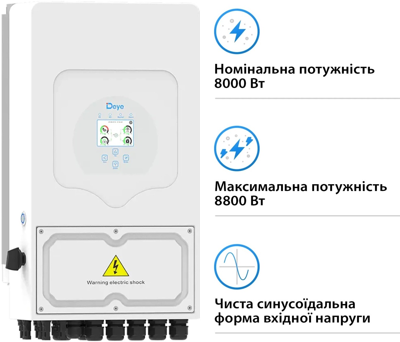 Інвертор Deye SUN-8K-SG05LP1-EU-AM2-P — це потужний гібридний пристрій на 8000 Вт, призначений для однофазних систем 220–240 В з низьковольтними акумуляторами. Він ідеально підходить для домашніх сонячних станцій, дозволяючи одночасно використовувати енергію від панелей, зберігати її в батареях і віддавати надлишки в мережу або живити будинок під час відключень.
