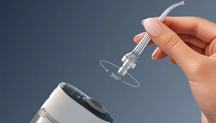 Магнітні насадки, що обертаються на 360°, забезпечують максимальну маневреність та дозволяють точно направляти струмінь води, охоплюючи всі куточки ротової порожнини без зайвих зусиль.