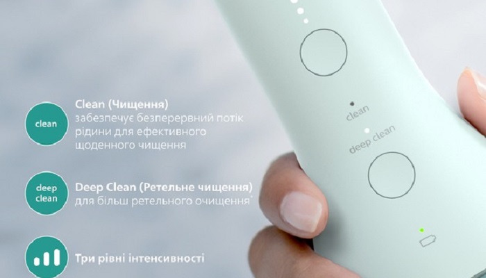 Для ще більш ретельного чищення пристрій оснащено технологією імпульсної хвилі Pulse Wave, яка делікатними імпульсами води переміщує насадку від зуба до зуба, забезпечуючи глибоке очищення навіть важкодоступних ділянок. Користувач може обирати 2 режими чищення — Clean (щоденне чищення) та Deep Clean (ретельне очищення), а також 3 рівні інтенсивності, що дозволяє налаштувати комфортний режим саме для себе.