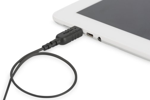 У даній моделі застосовано роз'єм mini HDMI, який розширює можливості підключення. Інтерфейс виконаний у класичному кольорі, тому буде зовсім непомітним серед пристроїв, розміщених на робочому місці. Довжина кабелю - 2 метри, що цілком достатньо для того, щоб розмістити пристрої у потрібному радіусі.