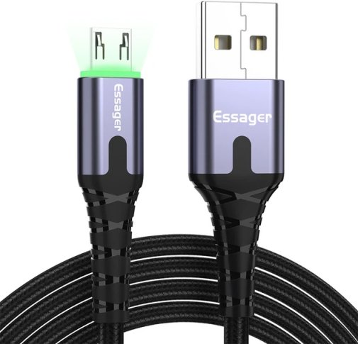 Окрему увагу варто приділити якості матеріалів і конструкції. Кабель вкритий міцним нейлоновим обплетенням по всій довжині, яке захищає його від перетирання, розривів і тріщин — типових проблем дешевих кабелів. Завдяки такому обплетенню кабель витримує вигини до 360° без пошкоджень, що суттєво збільшує термін його служби. Вбудований LED-індикатор підсвічує роз'єм під час заряджання — зручне рішення для використання вночі, коли не потрібно шукати порт у темряві. Кабель ESSAGER сумісний із будь-яким пристроєм, що має роз'єм Micro-USB: смартфонами, планшетами, навушниками, портативними колонками та іншою технікою.