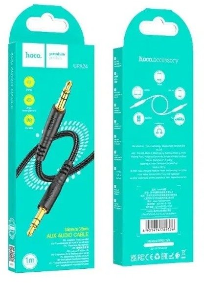 Hoco UPA24 — це надійний AUX-кабель 3.5 мм на 3.5 мм, який забезпечує якісне та без втрат передавання звуку від смартфона, планшета чи плеєра до автомобільної магнітоли, навушників чи колонок. Він ідеально підходить для щоденного використання, де потрібна стабільність і довговічність.