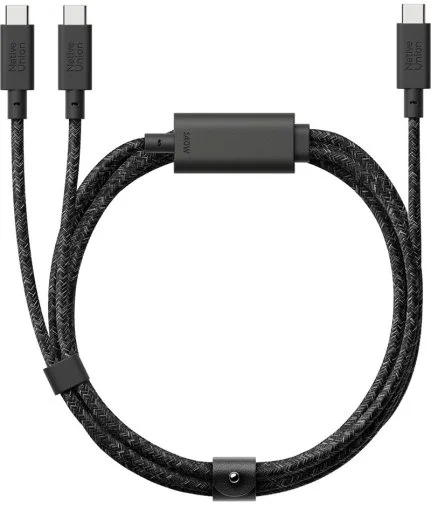 Кабель Native Union Belt USB-C to 2 USB-C 140W — це практичний аксесуар 2-в-1, який дозволяє одночасно заряджати два пристрої з портом USB-C, використовуючи лише один кабель. Він ідеально підходить для ситуацій, коли потрібно швидко підживити смартфон і ноутбук, планшет і навушники чи будь-які інші сумісні гаджети, без потреби носити кілька окремих кабелів — особливо зручно в подорожах, на роботі чи вдома.