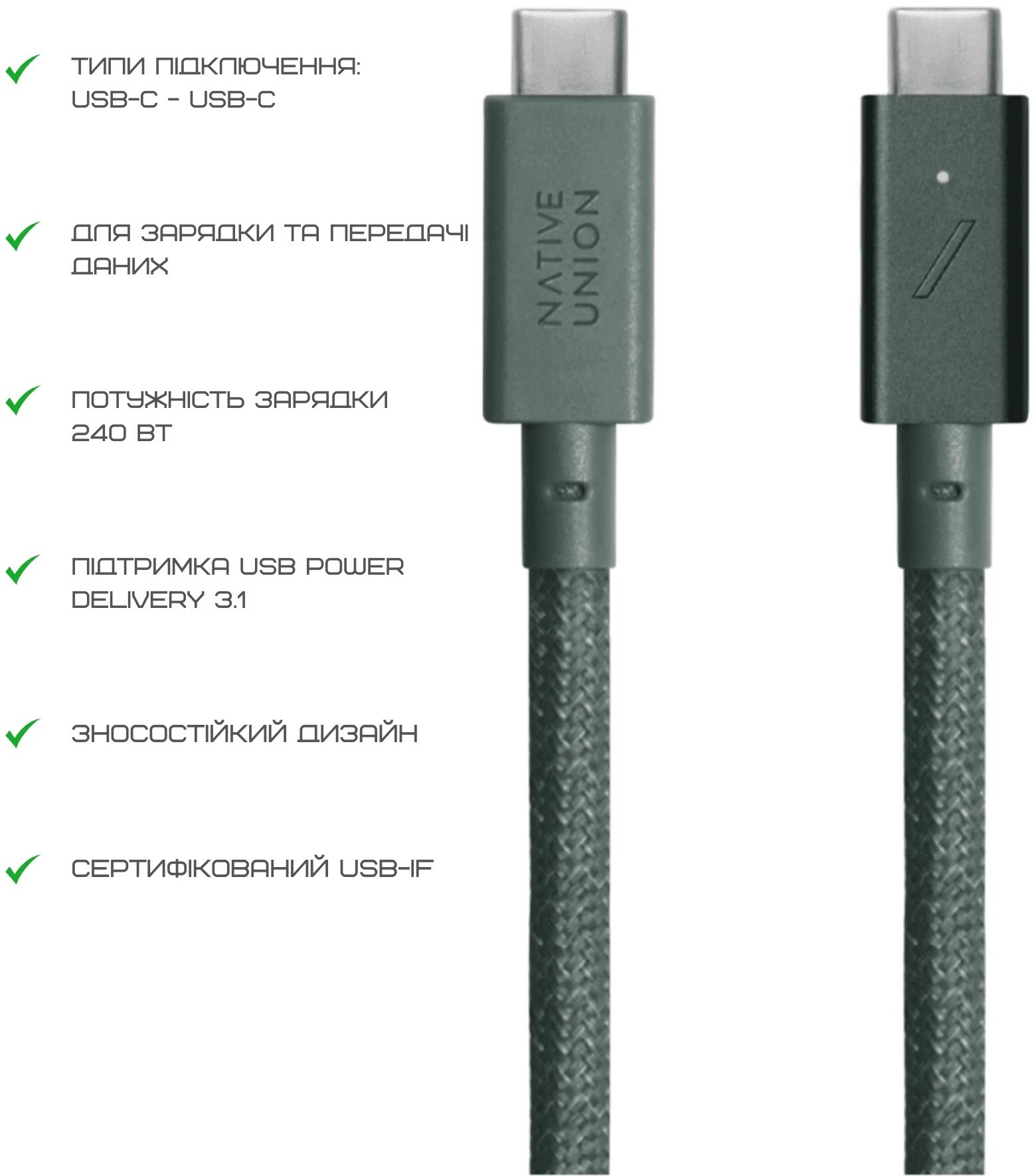 Native Union Belt Cable Pro поєднує в собі високу функціональність, екологічність і елегантний стиль. Використання перероблених матеріалів (100% перероблений ПЕТ і ТПУ, 75% переробленої шкіри) демонструє турботу про довкілля без компромісів у якості. Цей кабель не лише швидко заряджає та передає дані на рівні USB 2.0, але й виглядає стильно. Він стане надійним і довговічним рішенням для всіх, хто цінує якість, зручність і сучасний підхід до технологій.