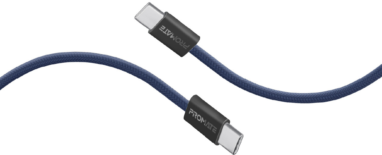 Promate EcoLine-CC200 - стильний кабель для швидкого заряджання та синхронізації пристроїв з роз'ємом USB-C. Має тканинне обплетення та підтримує 60W Power Delivery.
