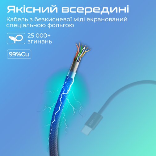 - Якісний всередині: Кабель з безкисневої міді, екранований спеціальною фольгою.