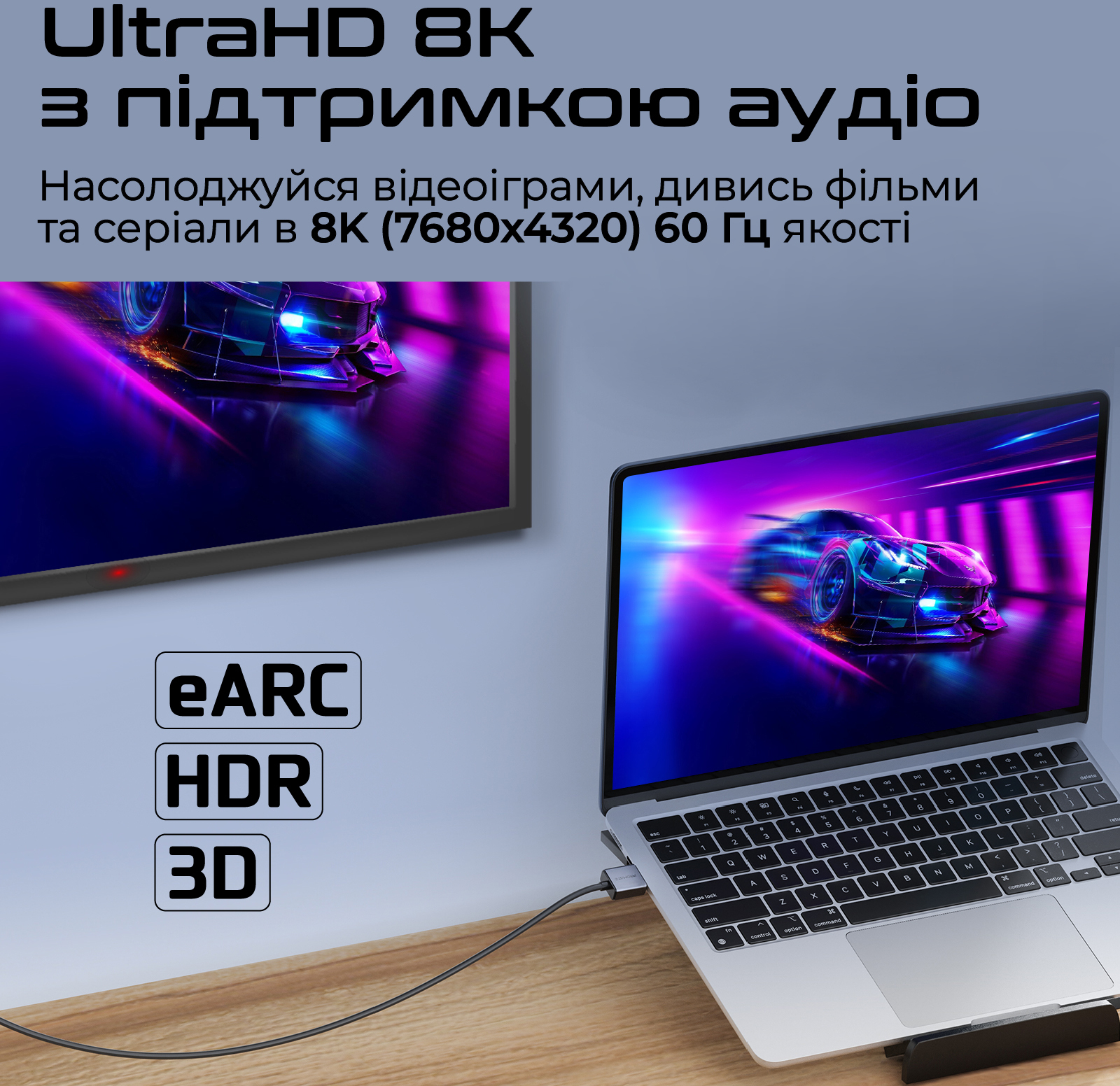 Виводь зображення на зовнішній дисплей у роздільній здатності UHD 8K за допомогою ліцензійного HDMI кабелю Promate PrimeLink8K-150.