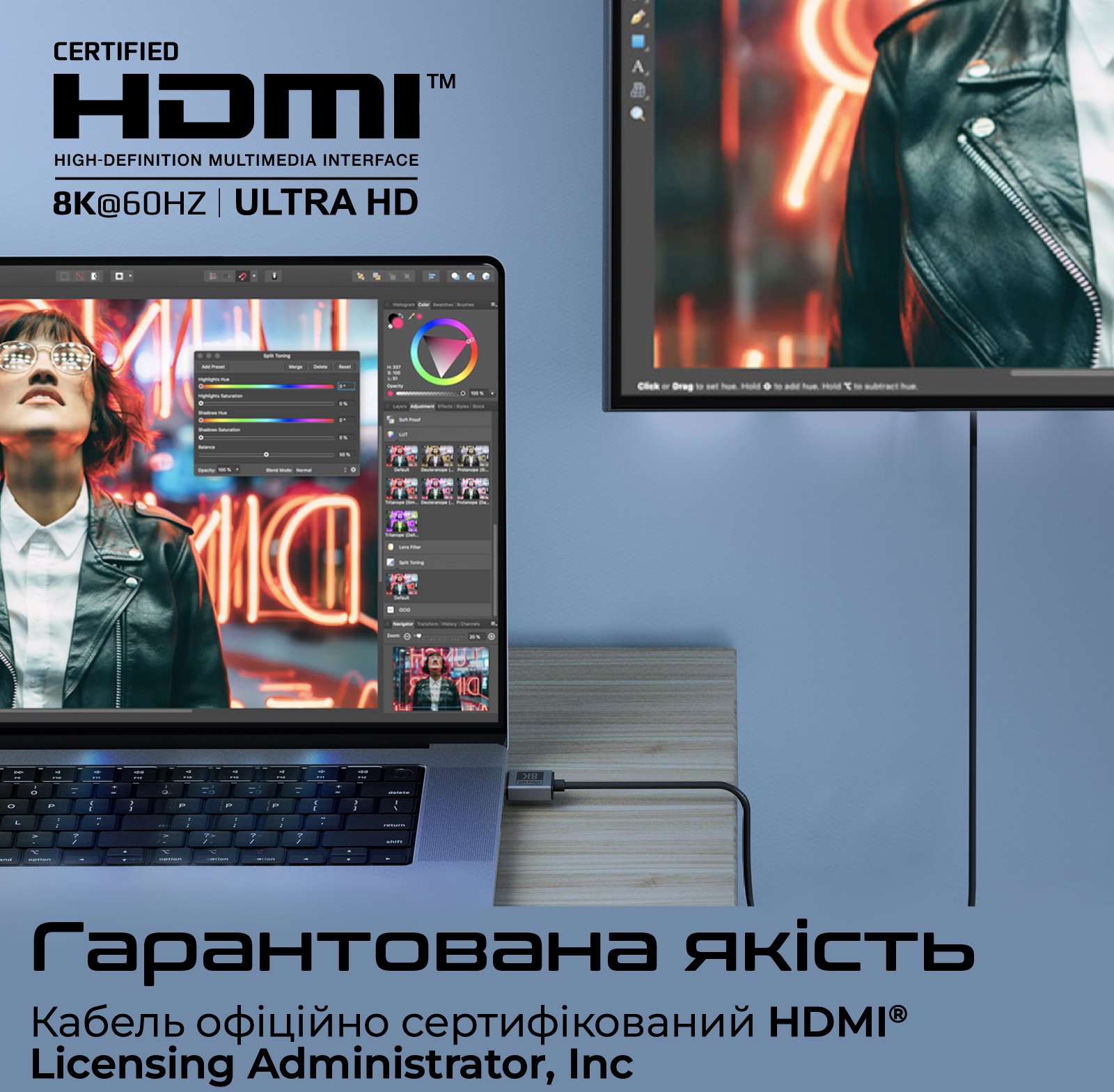 - Гарантована якість: Кабель офіційно сертифікований HDMI® Licensing Administrator, Inc та має відповідну ліцензійну етикетку на упаковці.