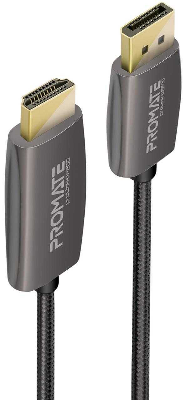 Promate ProLink-DP200 - преміальний DisplayPort to HDMI кабель у нейлоновому обплетенні та з позолоченими конекторами. Дивись фільми та серіали, слухай музику або грай у відеоігри у роздільній здатності 4K UHD 60 Гц без перешкод та втрати якості.