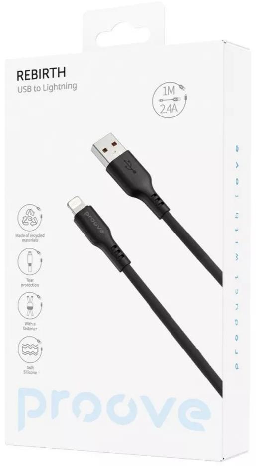 Proove Rebirth 2.4A AM/Lightning — це екологічний rабель для зарядки та синхронізації пристроїв Apple, виготовлений з переробленого силікону, що робить кожен ваш зв'язок з гаджетами внеском у захист довкілля без шкоди для планети.