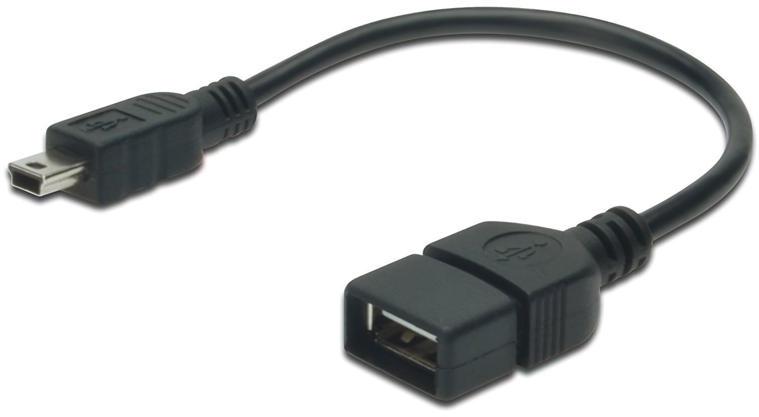 USB кабелі та розгалужувачі Digitus OTG AF / miniB 0.2m Black (AK-300310-002-S)