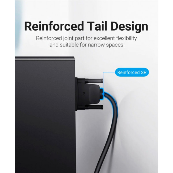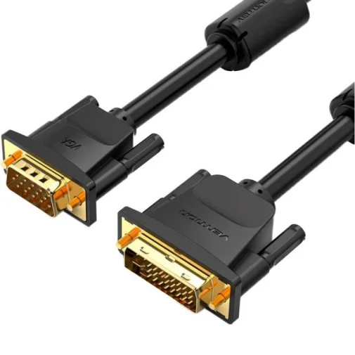 Vention DVI(24+1) to VGA Cable — це кабель для підключення пристроїв із виходом DVI до моніторів, проєкторів або іншого обладнання з VGA-входом. Він дозволяє використовувати старіше відеообладнання разом із сучасними комп'ютерами та відеокартами, не вдаючись до заміни техніки.