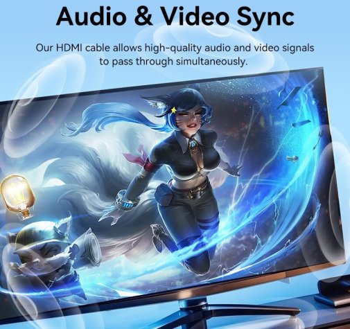 Підтримка HDMI 2.0 забезпечує повну сумісність з 4K@60Hz, 4K HDR та 3D — картинка залишається чіткою, кольори насиченими, а звук об’ємним навіть на такій відстані. Пропускна здатність 18 Гбіт/с гарантує, що сигнал проходить без артефактів, смуг, розмиття чи затримок. Потрійне екранування + цинкові конектори з позолотою захищають від електромагнітних перешкод, окиснення та втрат, тому кабель працює стабільно роками.