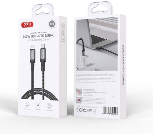 XO NBQ264A High Power Braided — високоякісний кабель, розроблений для швидкого та ефективного заряджання та передачі даних. Має достатню потужність, тому дозволить швидко заряджати ваші пристрої, включаючи смартфони, планшети, ноутбуки та інші пристрої з Type-C роз'ємом. Ви зможете насолоджуватися швидким заряджанням без зайвого затримування.