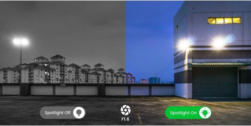 Сенсор 1/2.7" CMOS у поєднанні з технологією кольорового нічного бачення створює якісну картинку цілодобово. Камера оснащена інфрачервоним підсвічуванням і потужними прожекторами, що дозволяють перемикатися між чорно-білим і повнокольоровим режимом. Три режими роботи прожектора — завжди увімкнено, за тривогою або вручну — дають гнучкість для будь-яких умов освітлення та ефективного візуального стримування.