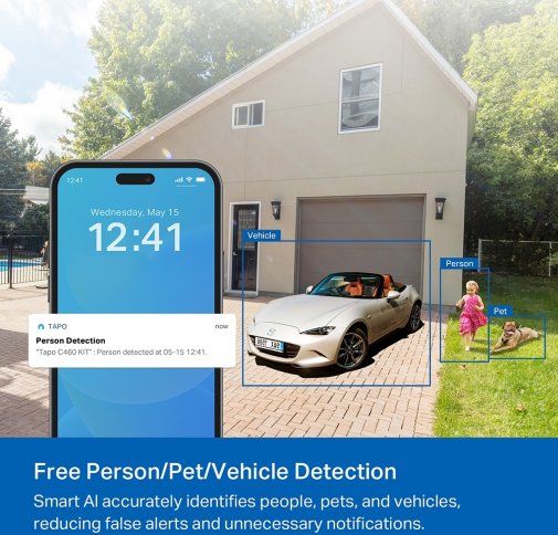 Tapo C460 Kit — це розумний охоронець, який працює цілодобово без вашої участі та дарує впевненість у безпеці за будь-яких умов.
