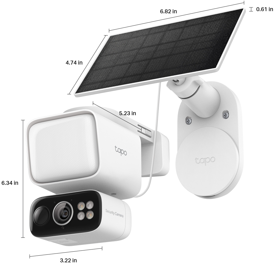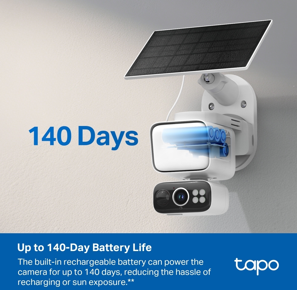 Застосунок Tapo дає повний контроль: живі трансляції, налаштування зон детекції, розклад роботи прожектора й сирени, голосове керування через Google Assistant та Amazon Alexa. Камера інтегрується з іншими пристроями Tapo, створюючи єдину систему безпеки. Сонячна панель Tapo A201 заряджає вбудований акумулятор, усуваючи проблеми з кабелями та забезпечуючи автономність.