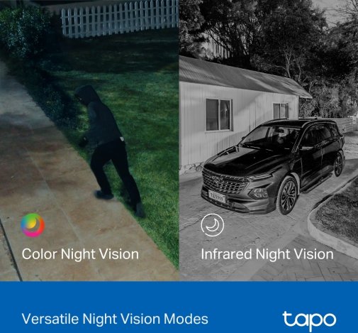 Для нічного спостереження доступні два режими: повноколірне бачення зі вбудованими прожекторами або інфрачервоний режим для непомітного моніторингу в повній темряві. Двосторонній аудіозв’язок з шумозаглушенням дозволяє спілкуватися через камеру, а сирена привертає увагу в разі потреби. Підтримка двохдіапазонного Wi-Fi (2,4 ГГц та 5 ГГц) забезпечує стабільне з’єднання, а локальне зберігання на microSD-карту дає можливість зберігати записи безпосередньо на пристрої.