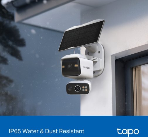 Вбудований акумулятор місткістю 10 000 мАг забезпечує тривалу автономну роботу — до 4 місяців без підзарядки в похмуру погоду. Комплектна сонячна панель Tapo A201 дозволяє повністю заряджати камеру всього за 1 годину сонячного світла в стандартних умовах, роблячи пристрій практично автономним і зручним для встановлення на вулиці. Камера має захист IP65 від дощу, пилу та снігу, що гарантує надійну роботу в широкому діапазоні температур.