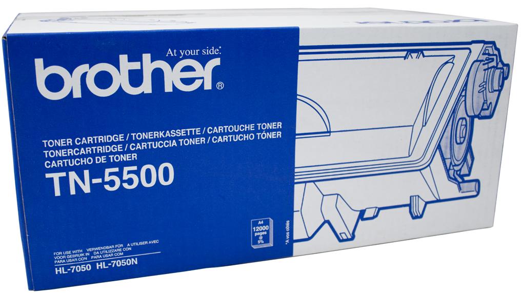 Оригінальний, заправлений тонером, картридж TN5500 виробництва Brother із заявленим ресурсом в 12000 сторінок (при 5% заповненні сторінки). Призначений картридж для принтера Brother HL-7050 і гарантує його довготривалу роботу та чіткі відбитки з дійсно чорним кольором.