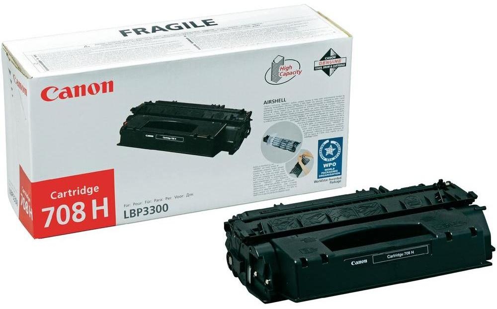 Оригінальний якісний тонер-картридж Canon 708H гарантує високу якість чорно-білого друку. Картридж збільшеного об'єму, тонера вистачає приблизно на 6000 копій А4 при 5 % заповненні, що дозволить забути про заправку на тривалий термін. Картридж сумісний з принтерами LBP-3300/ 3360.