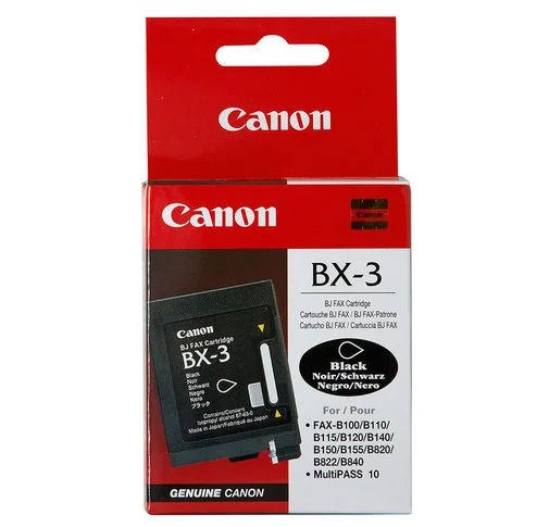 Canon BX-3 - оригінальний струменевий картридж чорного кольору. Ресурс картриджа складає 1000 сторінок формату А4. Завдяки використанню оригінальних витратних матеріалів ви отримуватимете гарантовано чудової якості роздрукований матеріал та з легкістю зможете замінити відпрацьований картридж самотужки.