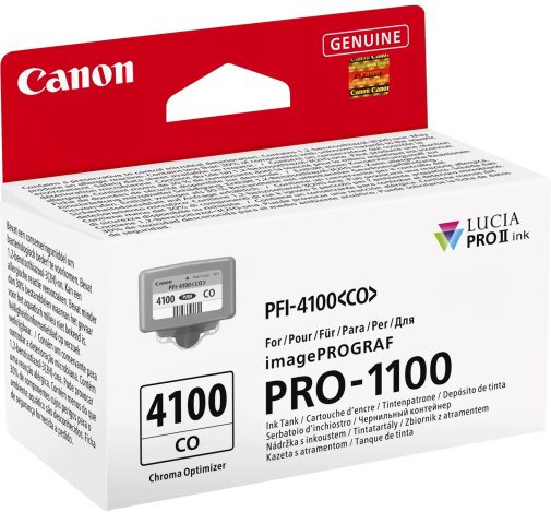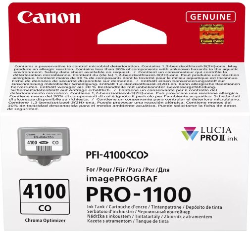 Картридж Canon PFI-4100 Chroma Optimizer — це оригінальний пігментний чорнильний контейнер, розроблений для професійних фотопринтерів серії imagePROGRAF PRO-1100, що забезпечує виняткову якість друку з акцентом на точне відтворення кольорів, глибину тіней і глянцеву рівномірність поверхні, перетворюючи звичайні зображення на галерейного рівня твори, ніби невидимий помічник, що підкреслює кожен нюанс у фотографіях чи графічних проєктах.