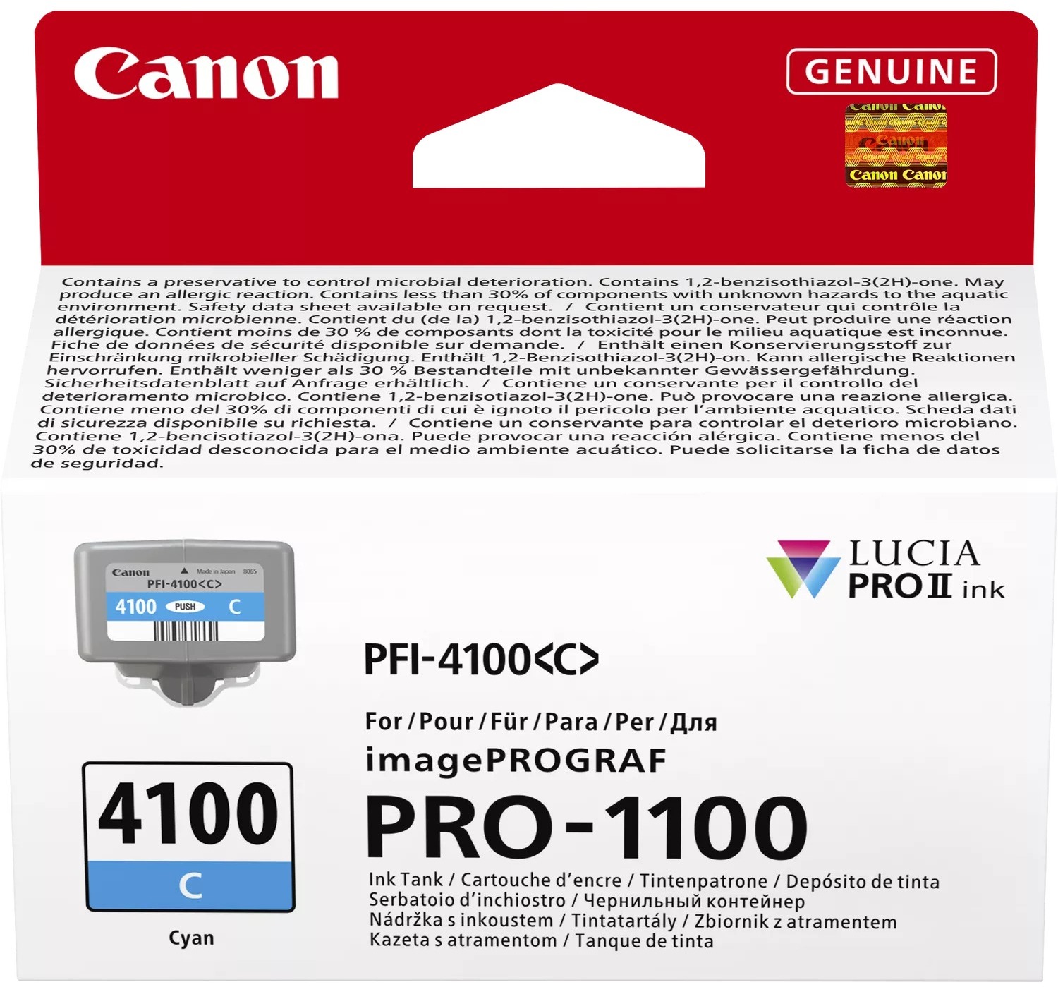 Картридж Canon PFI-4100 — це оригінальний пігментний чорнильний контейнер для професійних фотопринтерів серії imagePROGRAF PRO-1100, призначений для високоякісного друку з акцентом на точне відтворення блакитних відтінків, глибинну насиченість і стійкість до вицвітання, перетворюючи звичайні зображення на галерейного рівня твори, ніби невидимий помічник, що підкреслює кожен нюанс у фотографіях чи графічних проєктах.