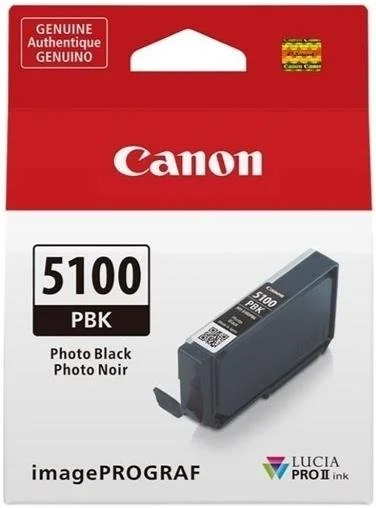 Canon PFI-5100 Photo Black — це оригінальний картридж із пігментним чорнилом системи LUCIA PRO II для професійного фотопринтера Canon imagePROGRAF PRO-310. Це чорнило є основним для друку на глянцевих і напівглянцевих носіях — фотопапері, барітовому папері та інших поверхнях із покриттям, де Photo Black забезпечує максимальну глибину чорного з характерним м'яким блиском.