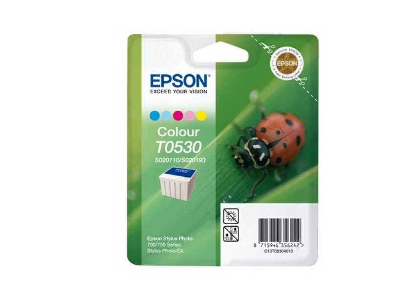 Epson C13T05304010 - оригінальний кольоровий картридж, що виготовлений в повній сумісності з фотопринтерами Epson StylusPhoto 700 / 710 / 720 / 750 / EX / EX2. Він заправлений п'ятьма різними чорнилами: блакитним, жовтим, малиновим, світло рожевим, та світло блакитним, що дозволить збільшити спектр відтворюваних кольорів. А завдяки здатності чорнила моментально проникати в шар носія, відбитки виходитимуть з принтера вже сухими.