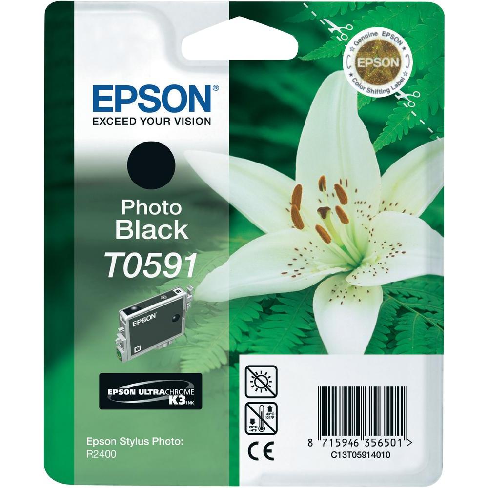 Оригінальний картридж Epson Stylus Photo Т0591 на чорнилах чорного кольору, призначений для фото друку. Оскільки в основі даного картриджу якісне чорнило, ваші фото будуть стійкі до змазування та вологи, а кольоропередача буде тішити око. Одного картриджа буде достатньо щоб роздрукувати до 400 сторінок зі стандартизованим заповненням сторінки. Картридж сумісний з Epson StylusPhoto R2400.
