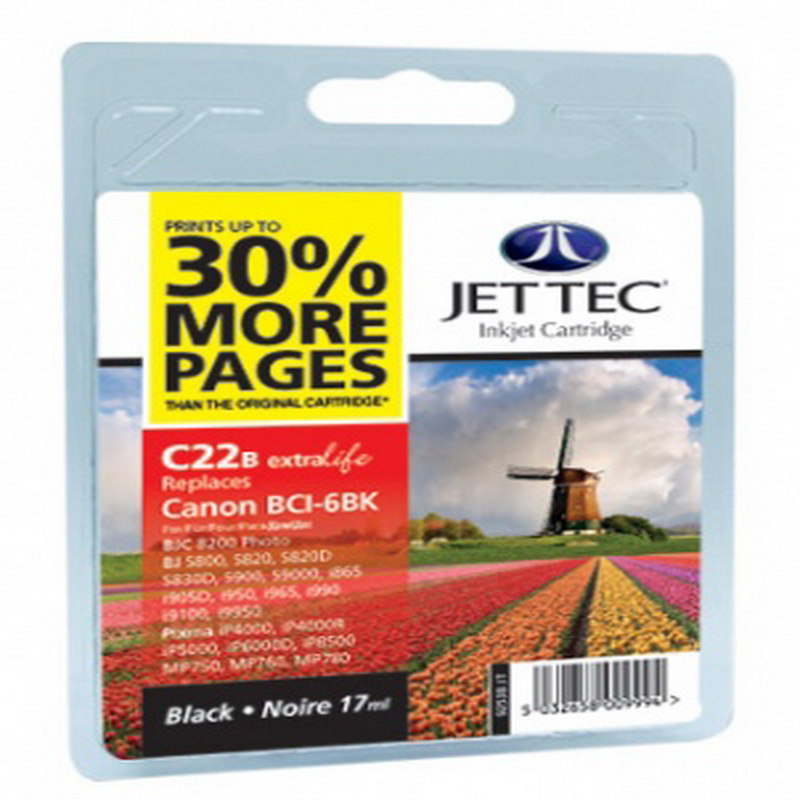 Якісний та хороший картридж фірми Jet Tec, який підходить для принтерів Canon, дасть змогу отримувати більшу на 30% кількість копій тіє ж якості ніж оригінальний картридж. Підходить до багатьох принтерів фірми Canon, а саме: BJC-8200 / BJ-i560 / i865 / i905D / i9100 / i950 / i965 / i9950 / BJ-S800 / S820D / S830D / S900 / S9000 / PIXMA iP3000 / PIXMA iP4000.
