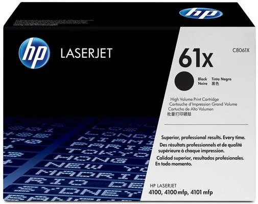 HP C8061X - оригінальний тонер-картридж, що розроблений для монохромних принтерів Hewlett-Packard Lazer Jet серії 4100. Дякуючи оригінальним витратним матеріалам, картридж забезпечить підвищену чіткість чорного тексту, плавні переходи відтінків сірого кольору та високу деталізацію графіки. Він гарантуватиме вам безперебійний друк до 10000 сторінок А4, що максимально можливі від повної заправки картриджа. Поряд з найсуворішим контролем якості, надійність, конструктивно притаманна даному картриджу, з технологією інтелектуальної друку, служитиме гарантією безвідмовної роботи принтера при мінімальній вашій участі та технічному обслуговуванні.