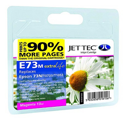 Струменевий картридж Jet Tec E73M сумісний для заміни на принтерах Epson Stylus C79, CX3900, TX200, TX209, TX400. Ресурс картриджа дає можливість друкувати до 90% більше сторінок ніж оригінальний картридж.