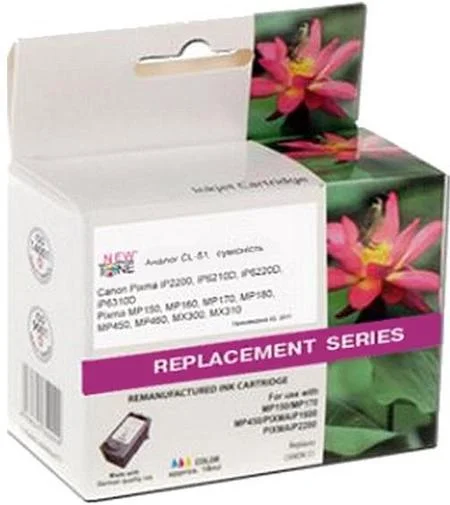 CL51H - якісний сумісний картридж від компанії NewTone. Виготовлений з якісних матеріалів та компонентів в сумісності з оригінальним картриджем. Призначений для встановлення в принтери Canon Pixma iP2200/MP150/170/450. Забезпечує ефективну взаємодію з зазначеними принтерами і відмінні результати у вигляді першокласних відбитків насичених яскравими кольорами та чіткою деталізацією.