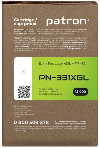 Сумісний картридж для HP 331X від виробника Patron, який стане хорошою альтернативою оригінальному пристрою.