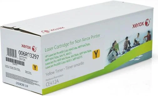006R03297 - лазерний картридж, який являється аналогом CE412A, тому може використовуватися у всіх сумісних з ним пристроях. Картридж заправлений жовтим тонером, тому передбачає встановлення у відповідне місце.