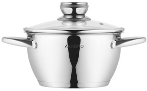 Каструля ARDESTO Gemini Lucca об’ємом 2,3 л – це практичний вибір для щоденного приготування страв, де важлива точність і надійність. Виріб виготовлено з нержавіючої сталі. Діаметр каструлі становить 18 см, висота 10 см, а товщина стінок 0,5 мм і дна 2,9 мм, що забезпечує рівномірне прогрівання без втрати тепла. Скляна кришка з отвором для пари дає змогу контролювати процес готування, не знімаючи її. З мірною шкалою всередині корпусу можна точно дозувати рідину. Руків’я з нержавіючої сталі зручно лежать у руці та залишаються холодними навіть за тривалого нагрівання. Каструля сумісна з усіма типами плит – газовими, електричними, склокерамічними, галогенними та індукційними. Виріб можна мити в посудомийній машині.