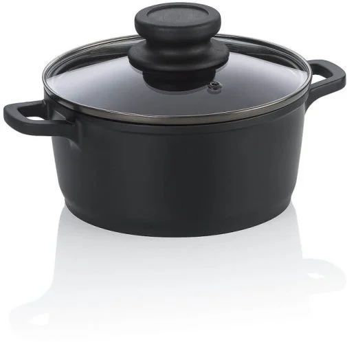Каструля з кришкою KELA Atura від німецького виробника посуду виготовлена з литого алюмінію. Керамічне покриття каструлі KELA Atura нового покоління без ПФАС (PFAS), термостійкість виробу до 250°C. Діаметр: 16 см. Висота: 8 см.