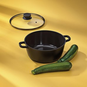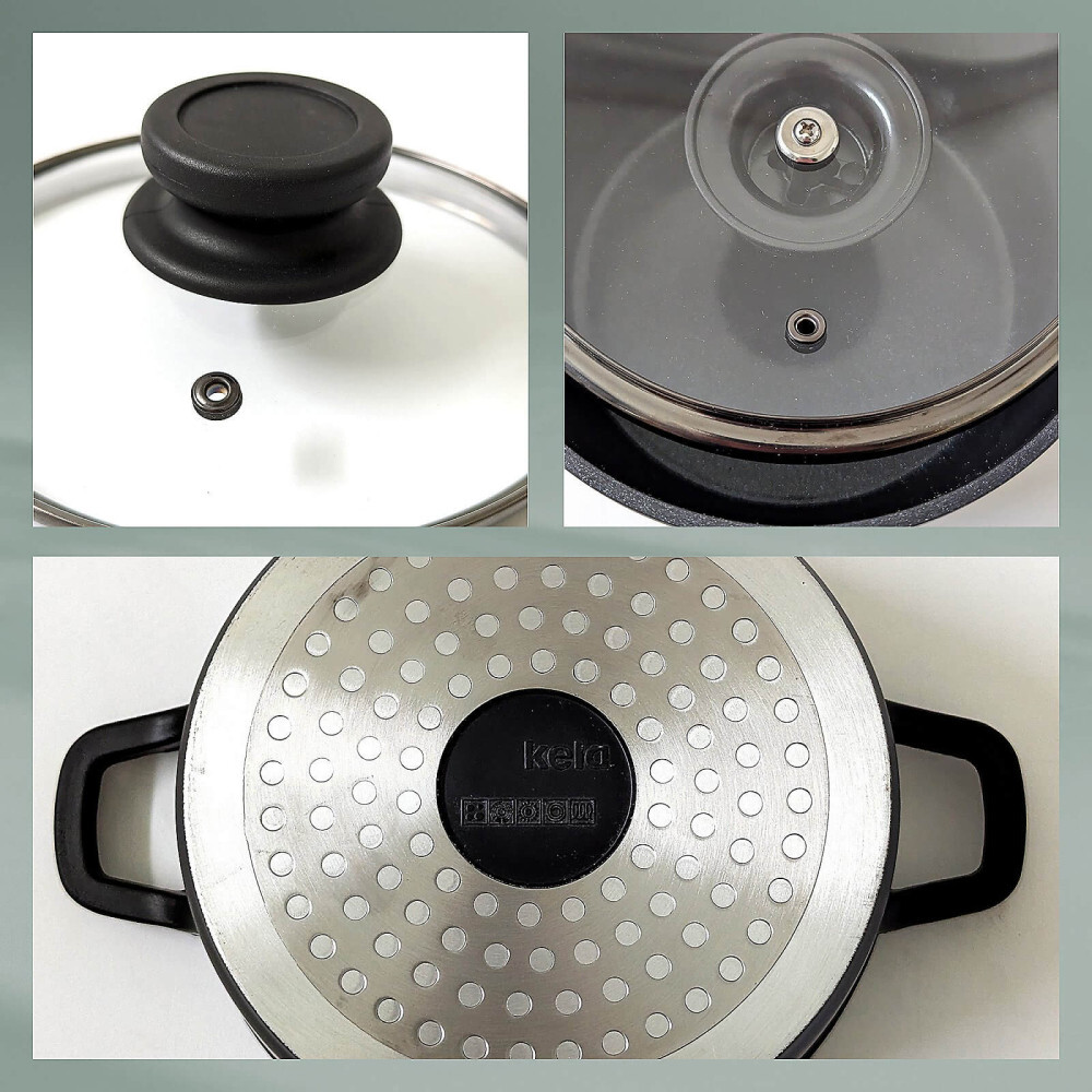 Каструля з кришкою KELA Atura від німецького виробника посуду виготовлена з литого алюмінію. Керамічне покриття каструлі KELA Atura нового покоління без ПФАС (PFAS), термостійкість виробу до 250°C. Діаметр: 24 см. Висота: 10,5 см.