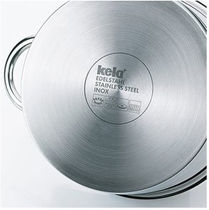 Німецький виробник посуду та начиння для кухні KELA, представляє стильну і сучасну колекцію каструль з кришкою KELA Cailin. Вона виготовлена ​​з високоякісної харчової нержавіючої сталі 18/10 з глянцевим поліруванням. Товщина стінок - 0,6 мм. Нержавіюча сталь відрізняється міцністю та довговічністю, стійкістю до механічних пошкоджень, зручна у використанні, легко миється. У ній можна готувати та зберігати будь-які продукти, тому що вона володіє бактеріостатичними властивостями, продукти залишаються свіжими тривалий час. Капсульне дно забезпечує рівномірний розподіл тепла та характеризується високою стійкістю до деформації. Товсте дно каструлі також збереже приготовану страву гарячою значно довше, їжа в такому посуді не пригорає. Скляна кришка оснащена ручкою з нержавіючої сталі. Каструля підходить для всіх типів плит, включаючи індукційні. Можна використовувати в духовці при нагріванні до 180 ° С. Каструлі KELA Cailin можна мити в посудомийній машині.