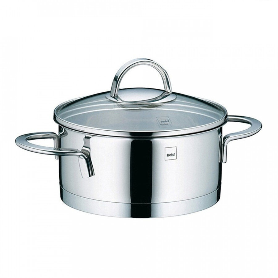 Німецький виробник посуду та начиння для кухні KELA, представляє стильну і сучасну колекцію каструль з кришкою KELA Cailin. Вона виготовлена ​​з високоякісної харчової нержавіючої сталі 18/10 з глянцевим поліруванням. Товщина стінок - 0,6 мм. Нержавіюча сталь відрізняється міцністю та довговічністю, стійкістю до механічних пошкоджень, зручна у використанні, легко миється. У ній можна готувати та зберігати будь-які продукти, тому що вона володіє бактеріостатичними властивостями, продукти залишаються свіжими тривалий час. Капсульне дно забезпечує рівномірний розподіл тепла та характеризується високою стійкістю до деформації. Товсте дно каструлі також збереже приготовану страву гарячою значно довше, їжа в такому посуді не пригорає. Скляна кришка оснащена ручкою з нержавіючої сталі. Каструля підходить для всіх типів плит, включаючи індукційні. Можна використовувати в духовці при нагріванні до 180 ° С. Каструлі KELA Cailin можна мити в посудомийній машині.