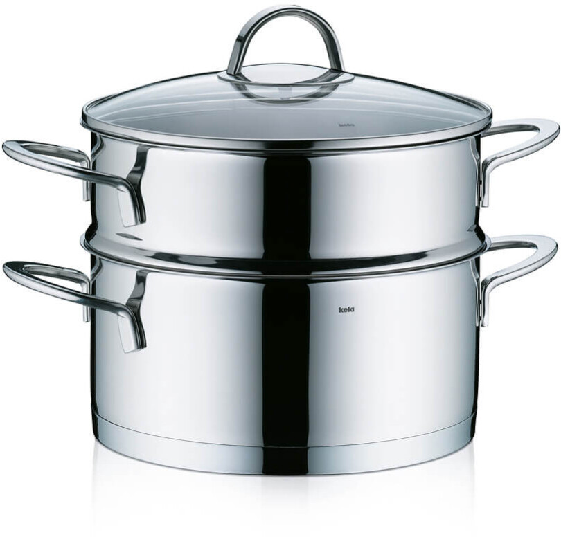 Каструля з пароваркою KELA Cailin виготовлена з нержавіючої сталі 18/10 з глянсовим поліруванням та чудово доповнює кухонний асортимент ТМ KELA. Капсульне дно забезпечує рівномірний розподіл тепла та характеризується високою стійкістю до деформації.