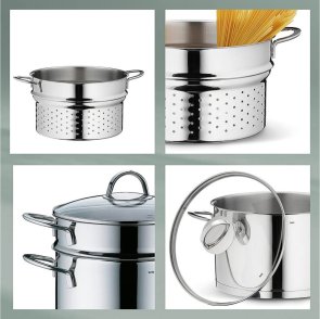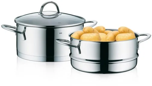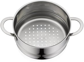 Приготування їжі на пару - найніжніший і здоровий спосіб кулінарної обробки, оскільки дозволяє зберегти в продуктах вітаміни та поживні речовини. Пароварка чудово підходить для приготування на пару різних видів овочів, м'яса, риби, а також варіння картоплі. Підходить для всіх типів плит, включаючи індукційні. Можна мити в посудомийній машині. Діаметр – 20 см, об'єм – 2,4 л.