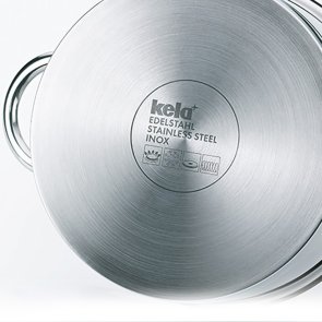 Німецький виробник посуду та начиння для кухні KELA, представляє стильну і сучасну колекцію каструль з кришкою KELA Cailin. Вона виготовлена з високоякісної харчової нержавіючої сталі 18/10 з глянцевим поліруванням. Товщина стінок - 0,6 мм. Нержавіюча сталь відрізняється міцністю та довговічністю, стійкістю до механічних пошкоджень, зручна у використанні, легко миється. У ній можна готувати та зберігати будь-які продукти, тому що вона володіє бактеріостатичними властивостями, продукти залишаються свіжими тривалий час. Капсульне дно забезпечує рівномірний розподіл тепла та характеризується високою стійкістю до деформації. Товсте дно каструлі також збереже приготовану страву гарячою значно довше, їжа в такому посуді не пригорає. Скляна кришка оснащена ручкою з нержавіючої сталі. Каструля підходить для всіх типів плит, включаючи індукційні. Можна використовувати в духовці при нагріванні до 180 ° С. Каструлі KELA Cailin можна мити в посудомийній машині.