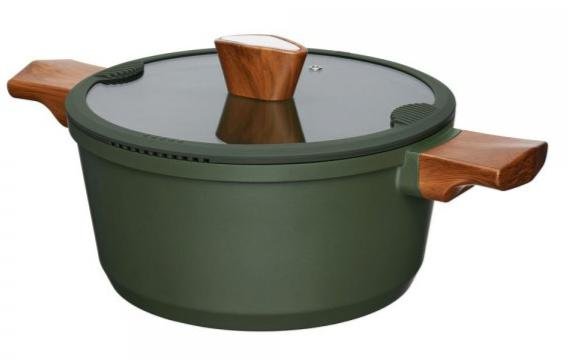 Скляна кришка оснащена стилізованою під дерево ручкою зі спеціальним отвором для випуску пари. І оскільки на кухні може статися всяке, ми подбали про те, щоб вона була оснащена силіконовим ободом, що амортизує, який не дає скляній кришці розбитися при ударі. Кришка також оснащена спеціальними отворами для зливу з обох боків, що дозволяє легко злити зайву воду, тож вам не доведеться щоразу тягнутися за друшляком.