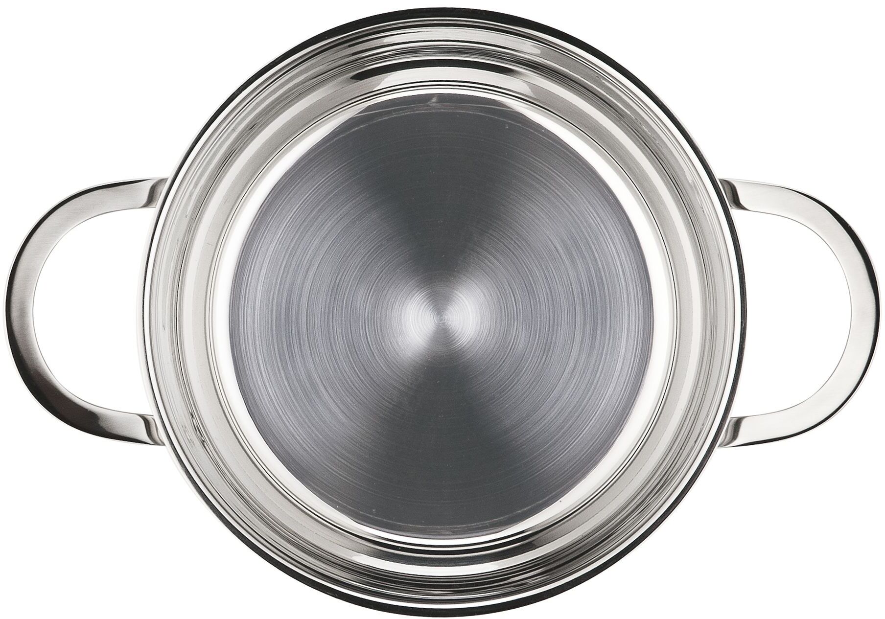 - Потрійне капсульне дно забезпечує рівномірний розподіл тепла по всій внутрішній поверхні каструлі